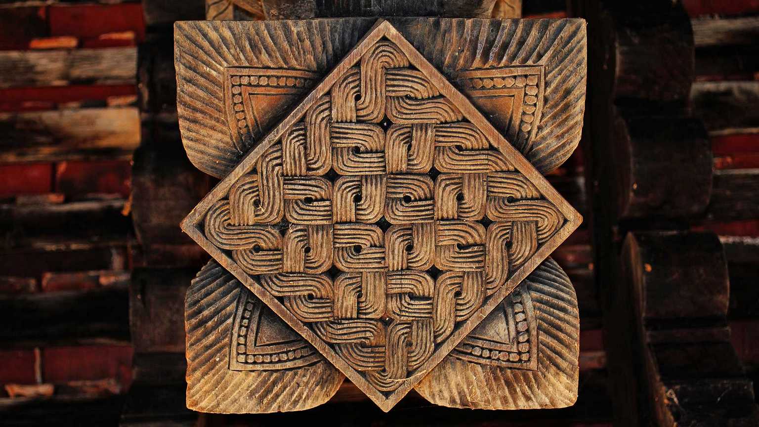 Embekke Devalaya, is a wooden temple situated in the Embekke village, built in the 14th century. Adjoining the main temple is a somewhat arched hall roof, like an inverted wooden boat with its cross beams showing in beautiful even rows. The ceiling is supported on wooden pillars with elaborate carved figures in various poses.